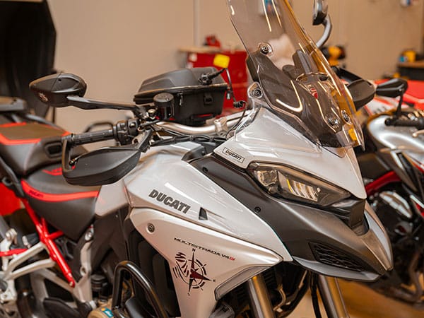 La revisione moto inizia con controlli amministrativi, verificando libretto e corrispondenza dati con il veicolo. Seguono test dei gas di scarico, frenata, avvisatore acustico, centratura fari, test visivo.